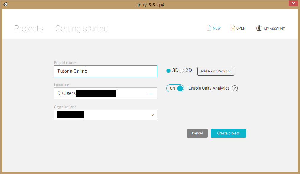 まずUnityを起動し、新しいプロジェクトを作成します。