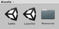 まず、この講座で作成するゲームはログイン画面として"Lancher"、ゲーム画面として"battle"という2つのシーンから構成されます。